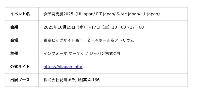 株式会社紀州ほそ川創薬(和歌山県)は、2025年10月開催の「食品開発展2025」に出展し、注目素材である八升豆(国産ムクナ豆)を紹介します。L-ドーパを豊富に含み、「実写版仙豆」として話題の天然素材を、国内シェアNo.1※の供給体制でご提案。OEM・サプリ開発に新たな可能性をお届けします。2025年に入り、原材料仕入に関する問合せが急増するなど、市場からの関心がますます高まる八升豆をぜひブースでご体感ください。