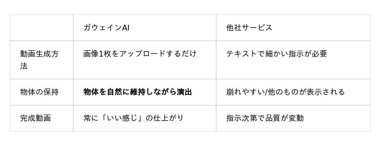 物体を維持しながら動画が制作できるのは「ガウェインAI」だけです!
