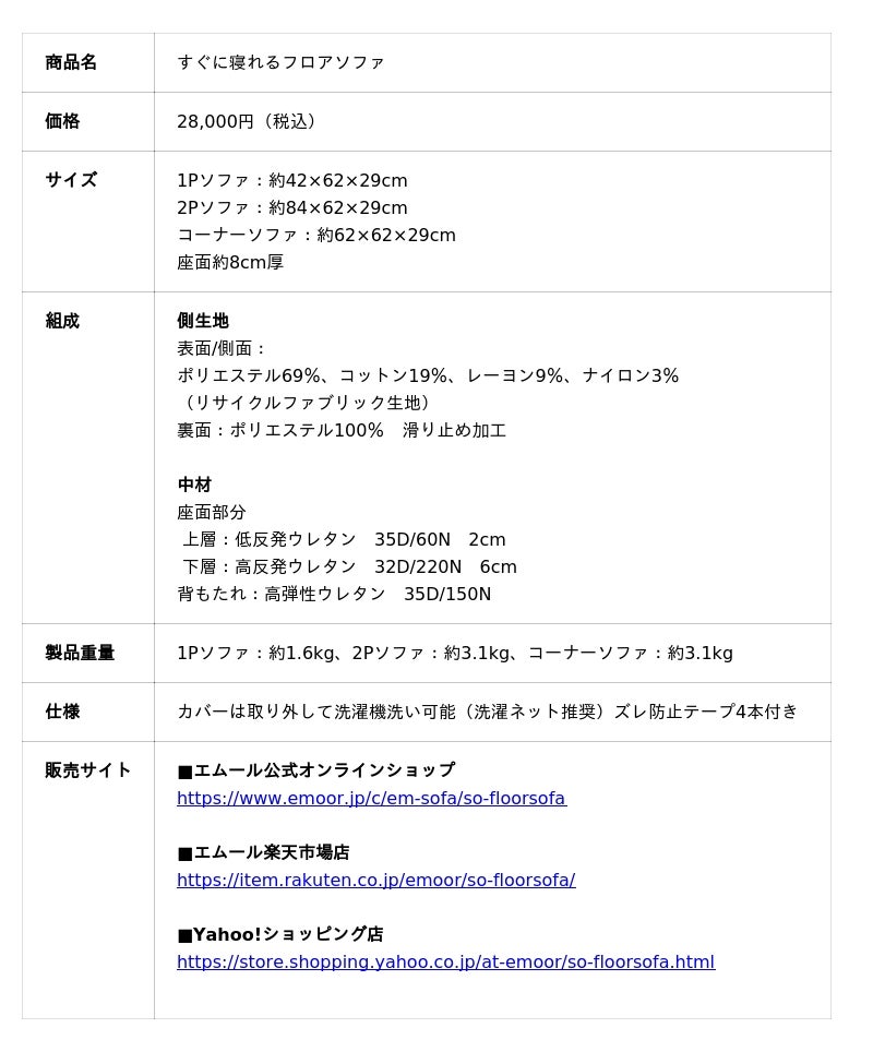 “寝る・座る・たたむ”に高い専門性を持つ健康家具ブランドEMOOR(エムール)から、高品質ウレタンを使用した3ピースを自由にレイアウトできる「すぐに寝れるフロアソファ」が新登場。