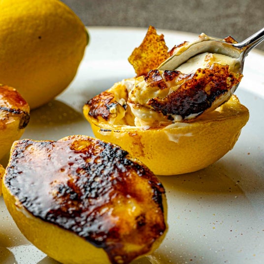 生レモンブリュレチーズケーキ大きなレモンをくりぬいて器にしたかわいいデザインです。
