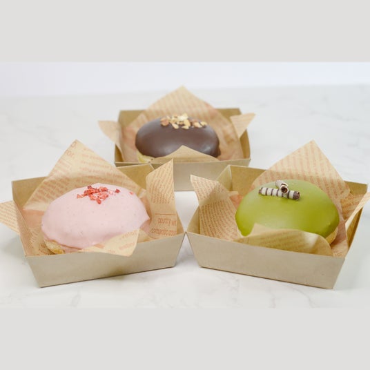 口の中でとろけるようなふわふわ感をお楽しみください。お味はいちご、チョコ、抹茶の3種類です。