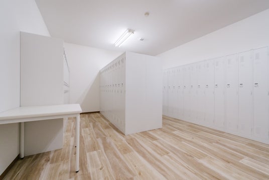 替えて作業する空間として、一人席や仕切り付きの集中ブースも併設。