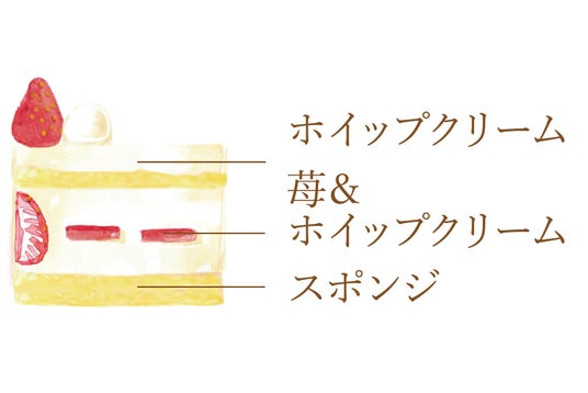 しい甘さのホイップクリームの間に、甘酸っぱくフレッシュな国産の苺をぎっしりサンド。