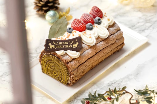 こだわり:クリスマス定番のブッシュ・ド・ノエル。切り株をイメージしたスポンジは、チョコの甘み