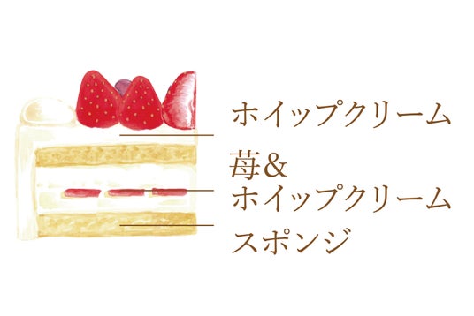 こだわり:クリスマスにぴったりな王道の苺のショートケーキ。国産の苺をサンドし、愛くるしいサン