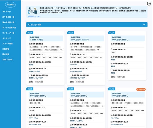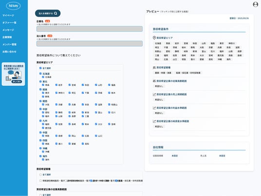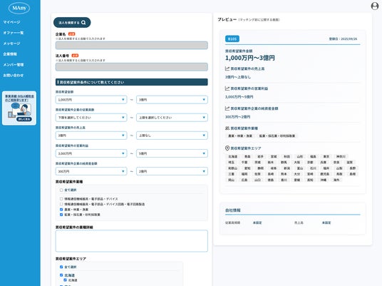 “オファーしやすい環境”を実現!MAny、買い手企業プロフィール項目をアップデート- 仲介会社の案件探索・提案精度をさらに高める新機能を提供開始 -