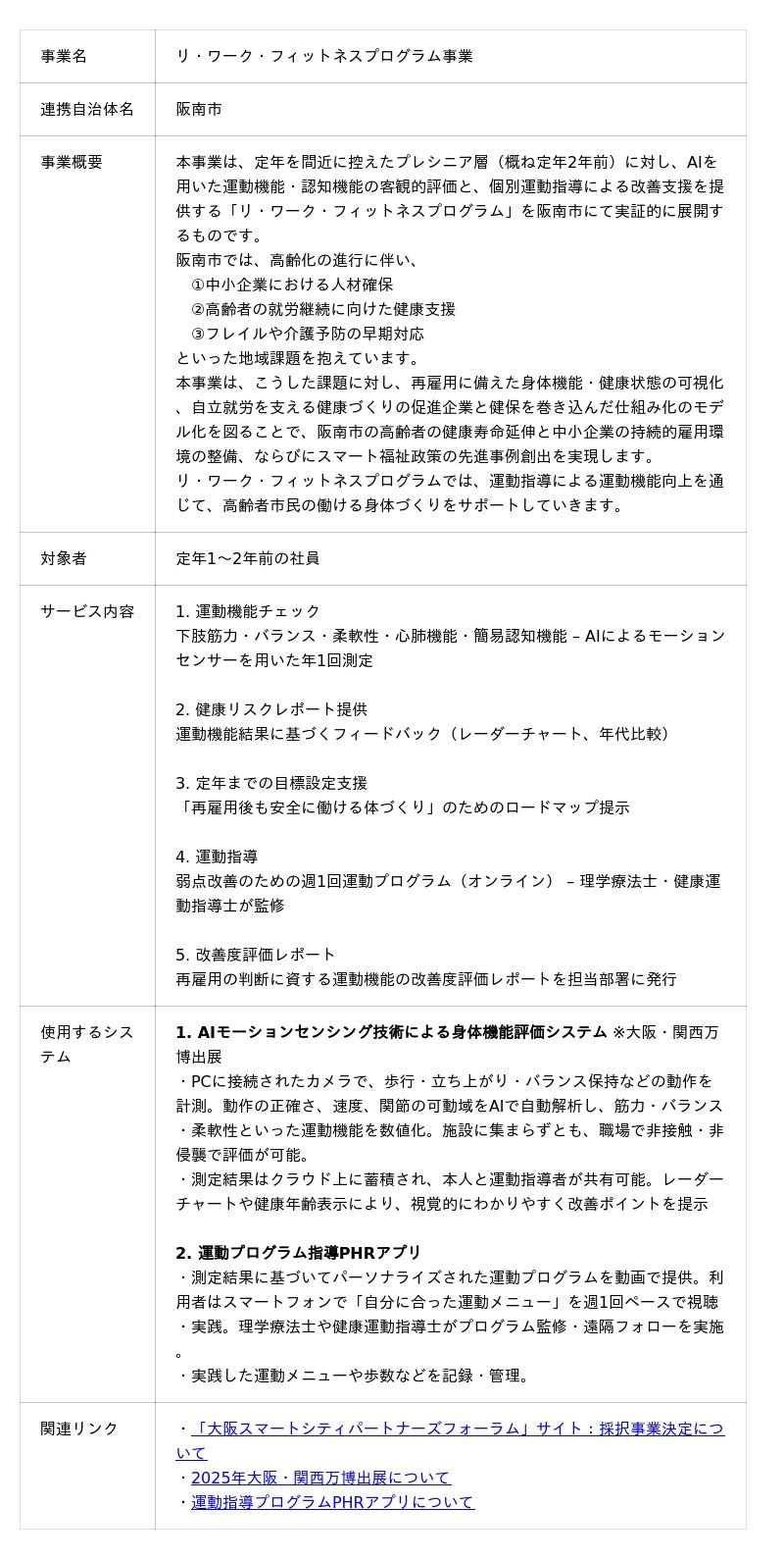 コガソフトウェア株式会社(東京都台東区、代表取締役:古賀 詳二)は、本制度のプロジェクト支援事業枠に応募し、「リ・ワーク・フィットネスプログラム事業」が採択されたことをお知らせいたします。