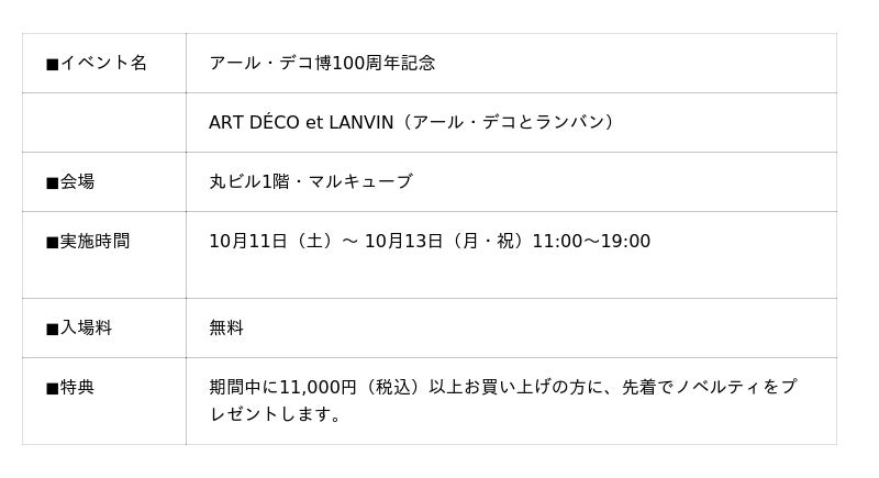 『ART DECO et LANVIN』イベント概要