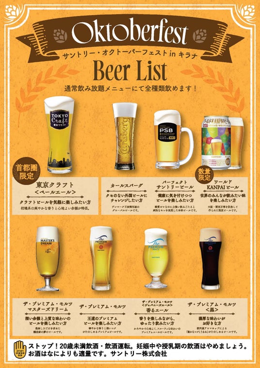 3,000円で東京クラフトをはじめ、サントリーのビール8種が飲み放題!?『サントリー・オクトーバーフェストinキラナ』開催|2025年10月1日(水)~31日(金)【キラナガーデン豊洲】