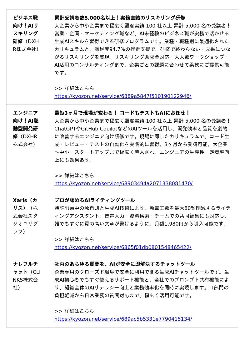 【kyozon新着サービス】業務を革新する最先端AIツールが続々追加!SaaS・ITサービスの比較サイト『kyozon』より