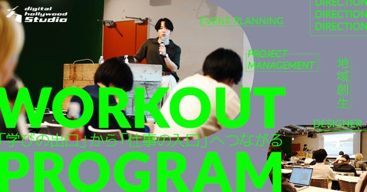 IT関連及びデジタルコンテンツの人材育成スクール、デジタルハリウッド(運営会社:デジタルハリウッド株式会社、本社/本校:東京都千代田区、代表取締役社長兼CEO:春名啓紀、学長:杉山知之)が運営をする、新しい学びのスタイルを通して多様なライフスタイルを支援し全国へ展開している、Webと動画について学べるラーニングスタジオ『デジタルハリウッドSTUDIO』のSTUDIO渋谷では、2025年10月より、第一線で活躍する企業やクリエイターと直接出会い、学び、共創できる場となる「ワークアウトプログラム」 を開始いたします。