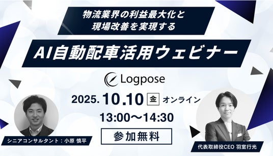 株式会社Logpose Technologies(本社:東京都渋谷区、代表取締役:羽室行光)は、2025年10月10日(金)13:00~14:30に、AI配車アシスタント「LOG」活用ウェビナーをオンラインにて開催いたします。