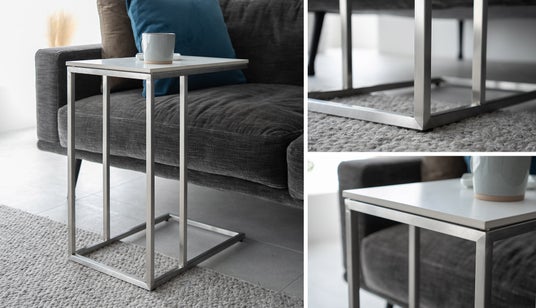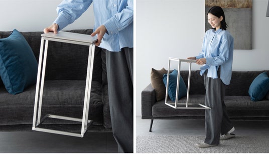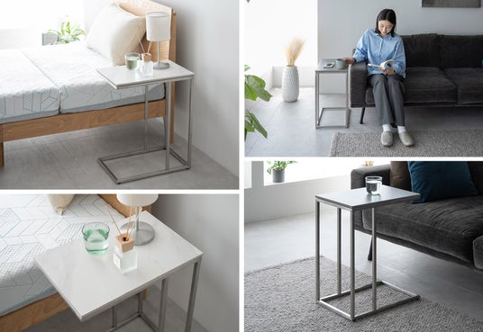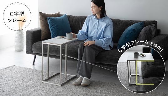脚がC字型になっており、家具の下に差し込むように配置が可能。手元までテーブルを引き寄せられるから、スマホやドリンクを置くのにも便利です。ソファにもベッドにも、ぴったり寄り添います。