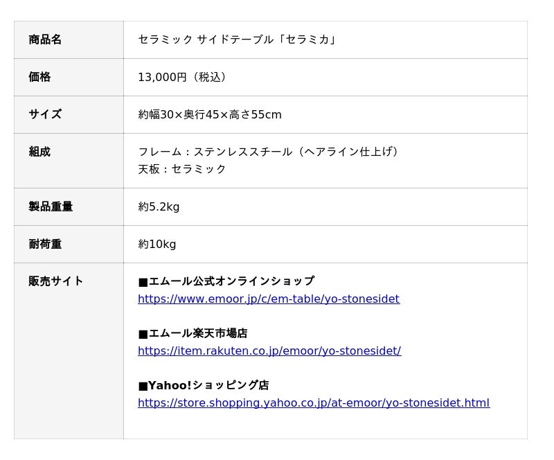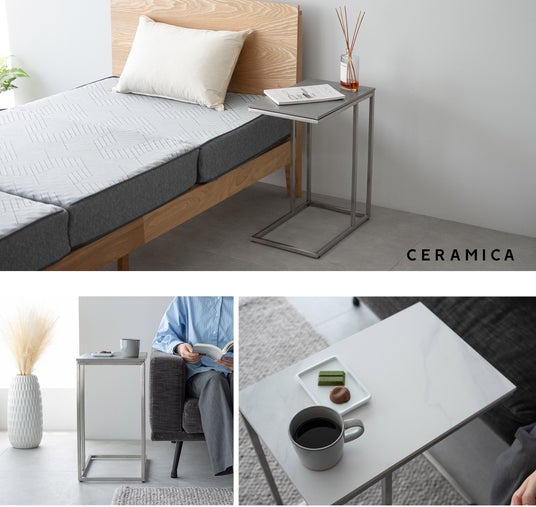 “寝る・座る・たたむ”に高い専門性を持つ健康家具ブランドEMOOR(エムール)から、セラミック天板を使ったセラミックサイドテーブル「セラミカ」が登場。都会的な空間にフィットする1台です。