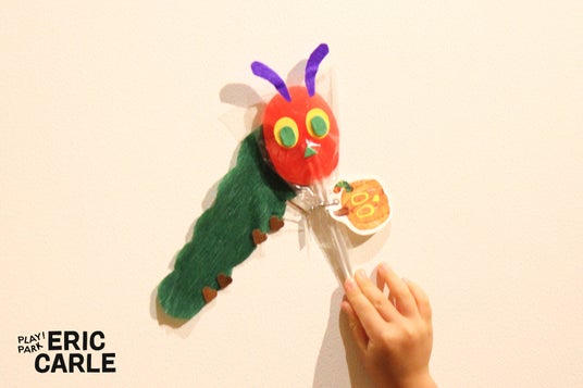 質感や柄が異なる白い布の中から好きなものを選び、自分だけのオバケを作ります。絵本の中で、はらぺこあおむしが食べたアイスやキャンディなどをモチーフにした飾りをつければ、「はらぺこオバケ」の完成です。紐をひっぱってふわふわとお散歩をさせたり、ごちそうを探しに連れだしたりと、オバケと一緒にパークを楽しみましょう。