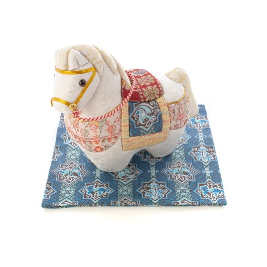 干支を飾る文化は古来より「時の運」を司り、「家内安全」や「商売繁盛」を祈る日本独自の年中行事として親しまれてきました。龍村美術織物では、美術織物を愛するお客様に向けて、干支「午」をテーマにした柄を用いた人形や雑貨を通じて、新しい年への希望や祈りを形にしたいという思いから、今回の新商品をご用意いたしました。