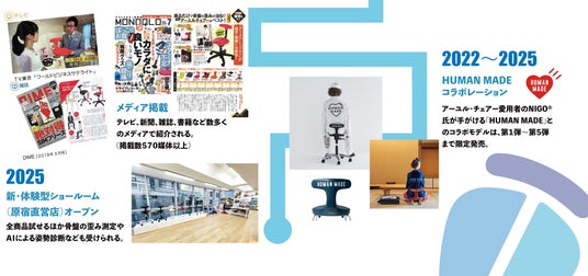 10月1日には公式サイト(http://www.ayur-chair.com)で20周年アニバーサリー特設ページが公開。20年のあゆみや歴代商品のアーカイブ、ものづくりへのこだわリや開発ストーリーなどのコンテンツが見られます。愛用者にはスポーツ選手やミュージシャン、経営者など各界の著名人も多く、祝福コメントが寄せられています。