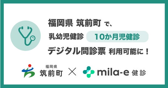 自治体向けサービスを開発する株式会社ミラボ(本社:東京都千代田区、代表取締役:谷川一也、以下「ミラボ」)が、福岡県 筑前町で導入する乳幼児健診 デジタル問診票サービス「mila-e(ミライー) 健診」において、2025年10月より対象となる健診の範囲を拡大し、10か月児健診でデジタル問診票の運用を開始しました。