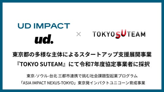 株式会社ud.Japan(所在地:東京都中央区日本橋、代表取締役:キム・ジョンホン、以下:ud.)は、東京都が実施する「多様な主体によるスタートアップ支援展開事業(TOKYO SUTEAM)」において、令和7年度の協定事業者に採択されたことをお知らせします。(協定期間:2025年10月から2027年3月)