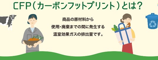 トップバリュ商品で2例目のカーボンフットプリント(商品の原材料から使用・廃棄までの間に発生する温室効果ガスの排出量)算定済商品です。トレーをなくし包材を小型化、プラスチックを削減しました。その効果を温室効果ガス(CO2)排出量で見える化しました。