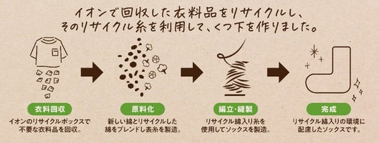 イオンの店頭で回収した衣料品をリサイクルし、その原料の一部をくつ下に使用しています。
