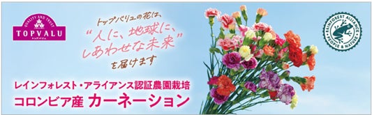 国内プライベートブランドとしては初めて、レインフォレスト・アライアンス認証農園で栽培されたコロンビア産カーネーションを「イオン」「イオンスタイル」など約230店舗にて、数量限定で発売します。1本の茎が枝分かれし、小ぶりでかわいらしい花をいくつも咲かせる“スプレータイプ”のカーネーションです。