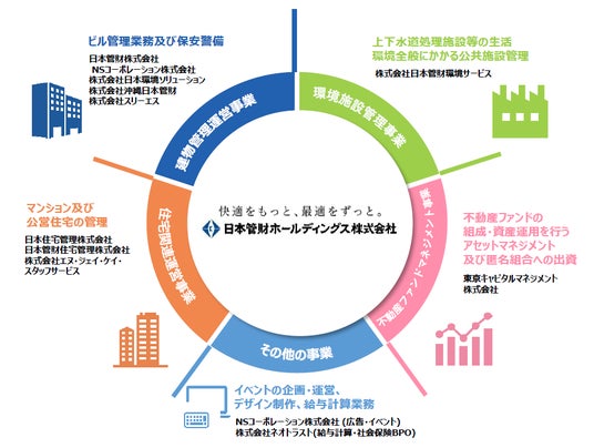 事業内容:オフィスビル、集合住宅、環境施設等の管理運営事業や不動産ファンドマネジメント事業等を営むグループ会社の経営管理及びこれに附帯又は関連する業務