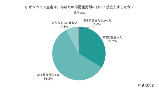 AI査定で最短1時間でマンション売却価格がわかり、最短2日で手軽に現金化できる「すむたす売却」を提供する株式会社すむたす(本社:東京都中央区、代表取締役:角 高広、以下「すむたす」)は、不動産売却経験者に対してオンライン査定の利用実態を調査しました。