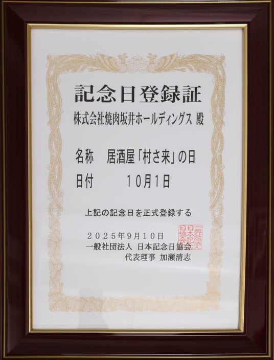 記念日名称:居酒屋「村さ来」の日 記念日日付:10月1日 正式登録日:2025年9月10日(水)居酒屋「村さ来」は、1973 年 10 月1日に、東京都世田谷区経堂(きょうどう)の地に1 号店がオープンいたしました。当時は居酒屋と言えば、「お酒を嗜む場所」でしたが、「村さ来」は、その中で酎ハイに着目、様々なフレーバー(味)の酎ハイを低価格で販売。酸味と甘みのある酎ハイが一つのブームになり、同時に、この爽やかなアルコールドリンクは、食事の需要も促しました。これにより、居酒屋は「飲む場所」だけでなく、「食事も楽しむ場所」へとスタイルを確立。現在の居酒屋スタイルの、原型の自負と共に創業から50年以上営業している、「村さ来」ブランドを、かつてのオールドファン、そして、現在のファン、また、未来へのファンへの、一つの道しるべとして記念日制定をいたしました。今後もご愛顧のほど何卒よろしくお願いいたします。