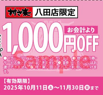 ●村さ来 八田店でのみご利用いただけます。