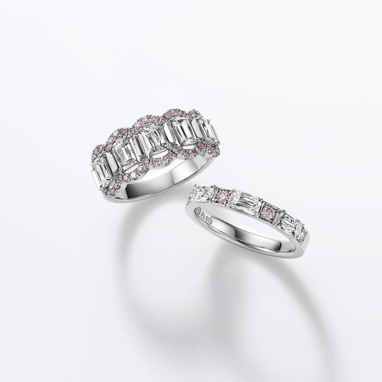 古くより幸せをよぶ鳥として知られる鴇。その羽の色に由来した黄みがかった淡い桃色のピンクメレダイヤモンドが彩りを添える数量限定品が、人気のデザイン「ASHOKA(R) KYO」「ASHOKA(R) ETERNITY」「ASHOKA(R) FRAME」のシリーズに加わります。