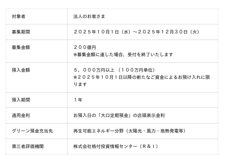 2025年10月1日~12月30日まで募集。定期預金で持続可能な社会づくりに貢献。