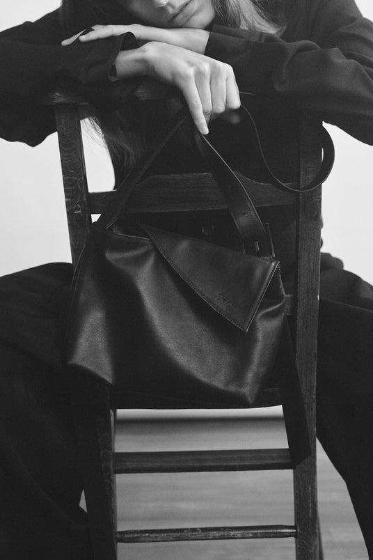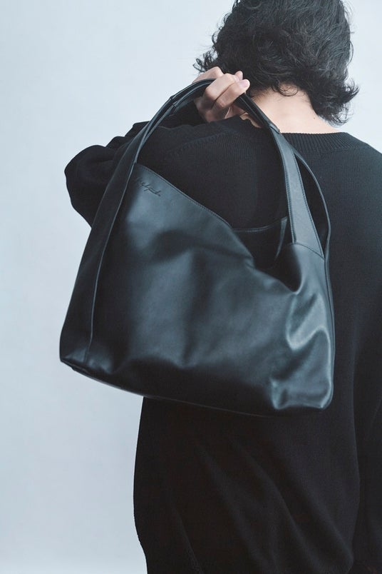 中に物を入れ、持った時に生まれるドレープと、優美なレザードレープがつくる有機的な陰影、幾何学的な丸いラインがユニークなバランスの「ROUND」。