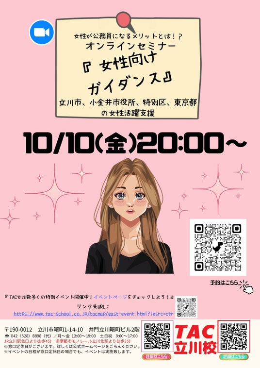 【TAC公務員】「女性が公務員になるメリットとは?!女性向けセミナー」を10/10(金)にオンラインで開催!