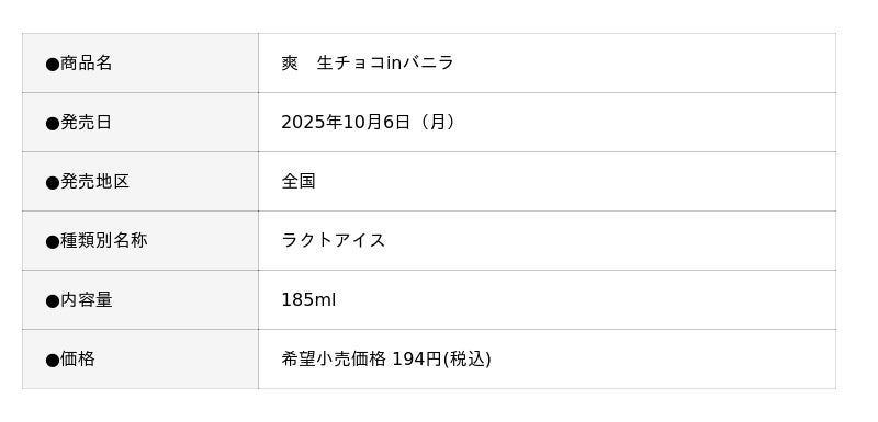 層状になった生チョコレートとバニラの絶妙なバランス!冬限定 『爽 生チョコinバニラ』2025年10月6日(月)より全国で発売