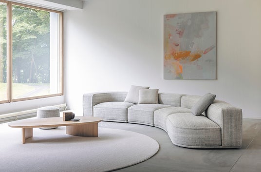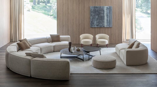 2025年1月に発表した、イタリア語で「そっと息を吹き込む様子」を意味するソファSOFFIO(ソフィオ)。その柔らかな座り心地を受け継ぎながら、空間にゆるやかなリズムを生み出すモジュラーソファSOFFIO ELEMENTI(ソフィオ エレメンティ)が新たに加わりました。SOFFIO ELEMENTIは、ラウンド型のモジュラーソファを、日本の住環境に合うサイズ感とバリエーションで展開。30°という角度にこだわり、緩やかにラウンドするフォルムは、空間に柔らかさを与え、座る人同士の自然な会話を促します。ユニットはクローズエンド、オープンエンド、アーチ型、アームレス、スツールの5種類を用意。組み合わせ次第でコンパクトな部屋から大空間まで自在にフィットし、絶妙なバランスのソファが完成します。