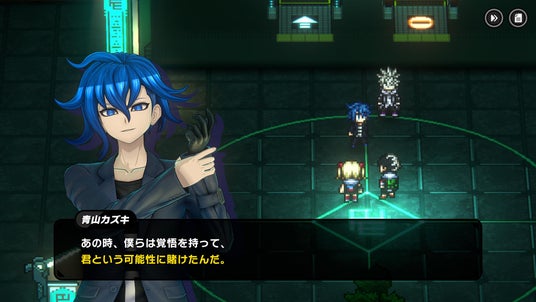 『トライブナイン』の探索パートでは、2Dドットで描かれたネオートーキョー国のシティを、実際にキャラクターを操作しながら冒険することで、ストーリーを進行していきます。