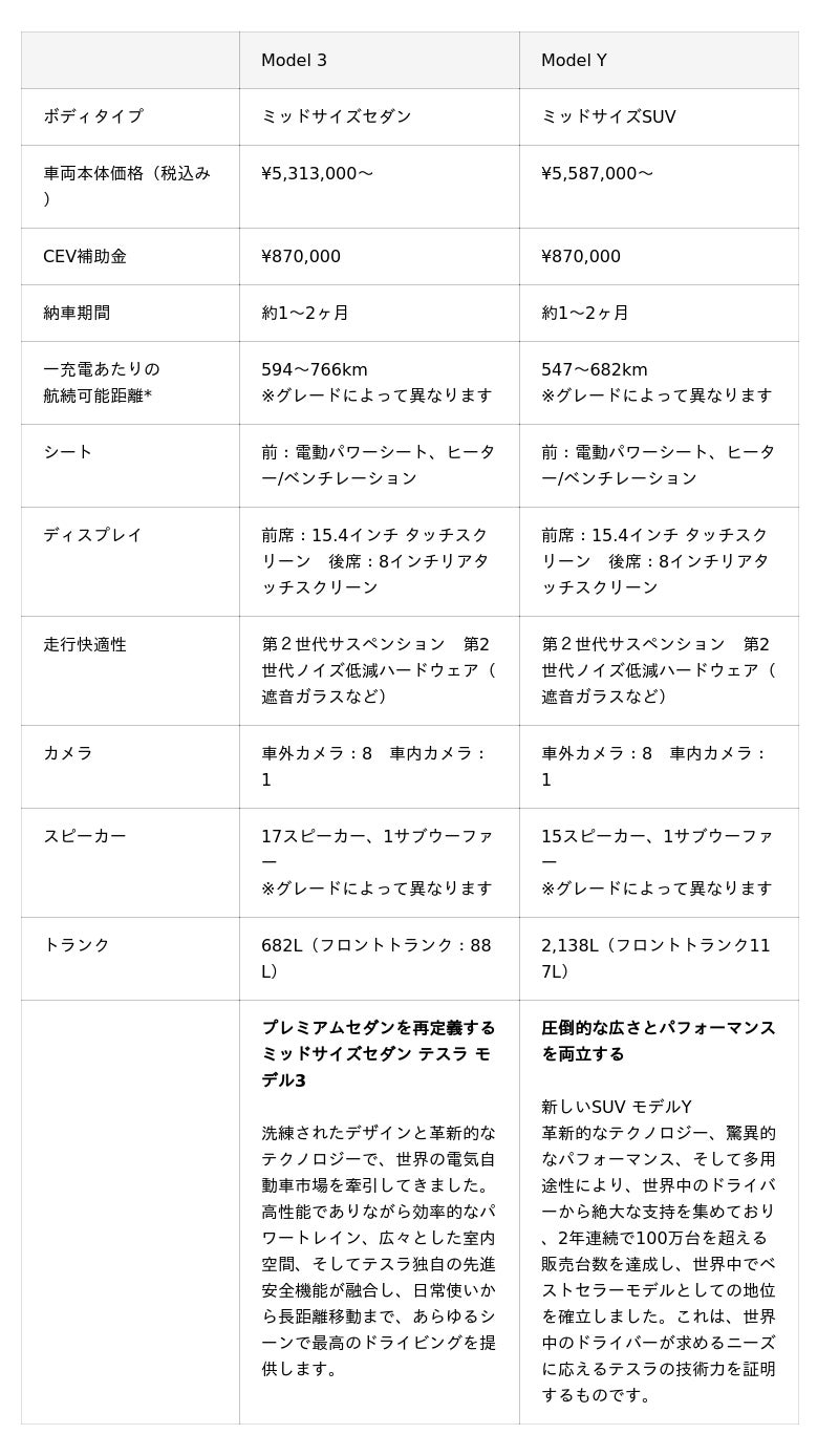 車両本体価格は558.7万円~Model Yは、優れた航続距離、革新的なテクノロジー、そして圧倒的な広さなど、快適性に優れたミッドサイズSUVです。