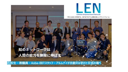 LENを通じて、世代や立場を超えて再びつながり、知見を共有し、新たなイノベーションを創出することで、Aoba-BBTは「生涯にわたり自己をアップデートし続ける」環境を整備します。これからも教育の未来に貢献し、社会全体の持続的な発展に寄与してまいります。