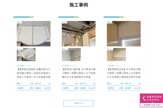 さらに、当社が強みとする「施工事例(ケーススタディ)」も「ペット汚れ」「カビ対策」「火災復旧」「水害復旧」「臭いトラブル」「原状回復工事」の6分野で新設。具体的な案件をもとに課題と解決プロセスを公開することで、透明性の高い情報提供を行い、読者にとって実用的かつ信頼できる知見をお届けします。