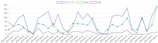 SDGs採択10周年の9月25日に記事数増加が顕著