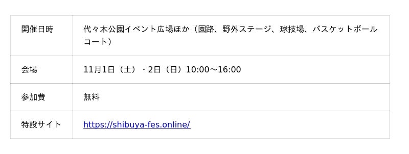 渋谷区(区長:長谷部 健)は、「渋谷区くみんの広場 ふるさと渋谷フェスティバル」を、今年も開催します。昭和53年にスタートし、48回目を迎える今回は、11月1日(土)・2日(日)に代々木公園を会場として実施します。