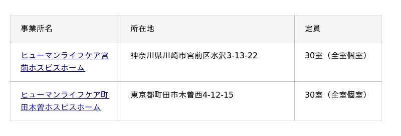 - 神奈川県川崎市・横浜市・相模原市、東京都町田市で運営するホスピスホームやグループホームなどとも連携