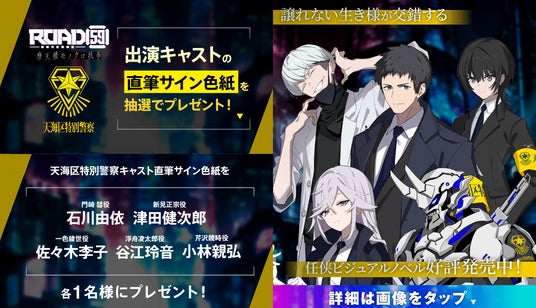Nintendo Switch、Steam向けビジュアルノベルゲーム「ROAD59 -新時代任侠特区- 摩天楼モノクロ抗争」の発売を記念して「天海区特別警察」キャスト5名のサイン色紙がそれぞれ1名様に当たるキャンペーンをROAD59公式Xにて開始いたしました。