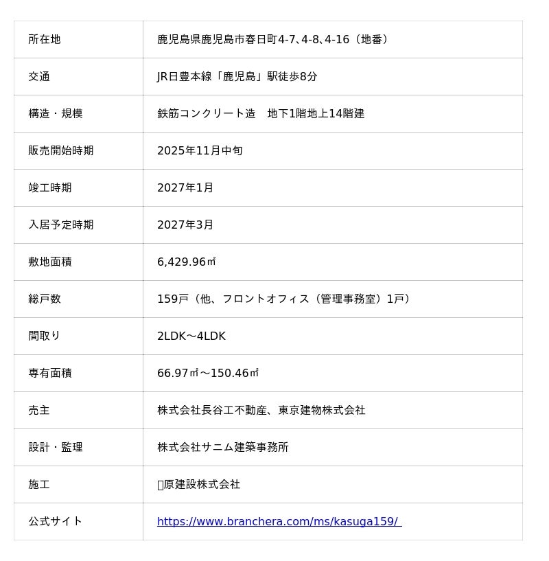 株式会社長谷工不動産(本社:東京都港区、代表取締役社長:松本 健)は、この度、鹿児島県鹿児島市で「ブランシエラ南洲門前通り」(以下、「本物件」)のモデルルームを10月4日(土)よりグランドオープンしますのでお知らせします。