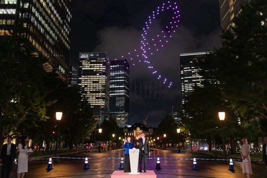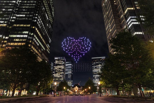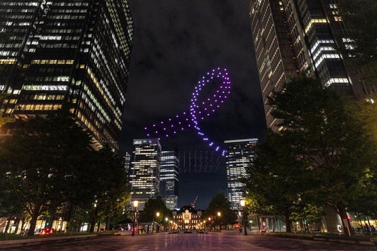 小池百合子東京都知事と共に、「乳がんのない世界へ」を願い点灯 / 360機のドローンが照らす、東京 丸の内の夜空に浮かぶピンクリボン