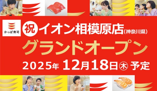 コロワイドグループのかっぱ寿司(カッパ・クリエイト(株) 本社:神奈川県横浜市、代表取締役社長:山角豪)は、2025年12月18日(木)に「かっぱ寿司 イオン相模原店」をオープンいたします。