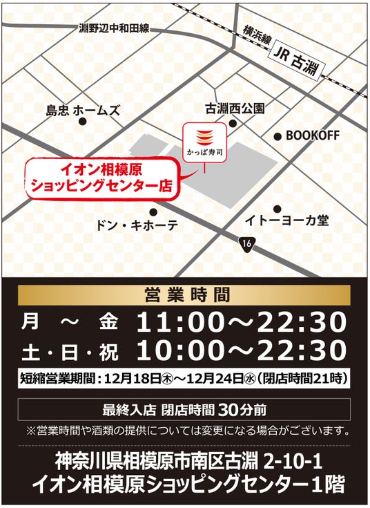 ■■■店舗概要■■■正式名称:かっぱ寿司 イオン相模原店