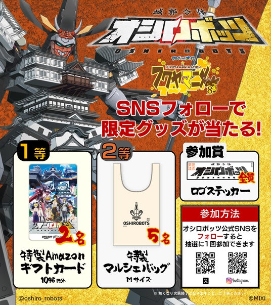 キャンペーン:城郭合体オシロボッツブースで公式SNSをフォローすると、抽選に参加できます。
