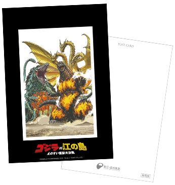 ゴジラ 新江ノ島水族館 重ね捺しアートメインビジュアル「ゴジラ&キングギドラ&ビオランテ/江の島」が、重ね捺しのアートポストカードに!